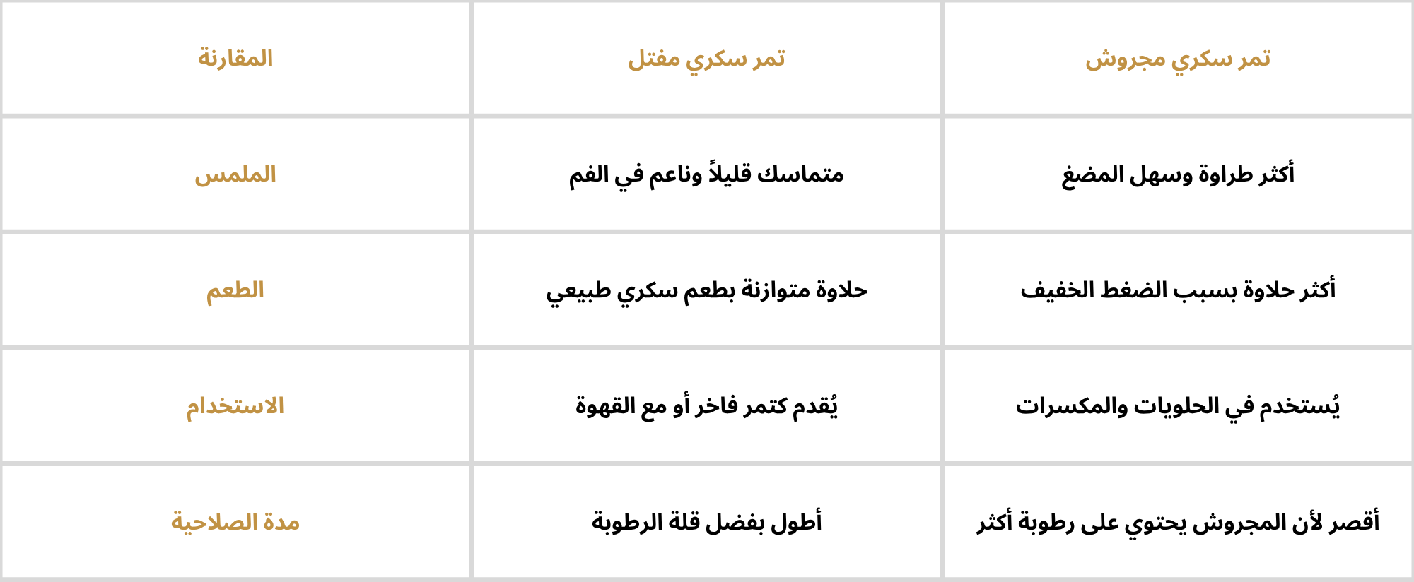 الفرق بين تمر سكري مفتل وتمر سكري مجروش